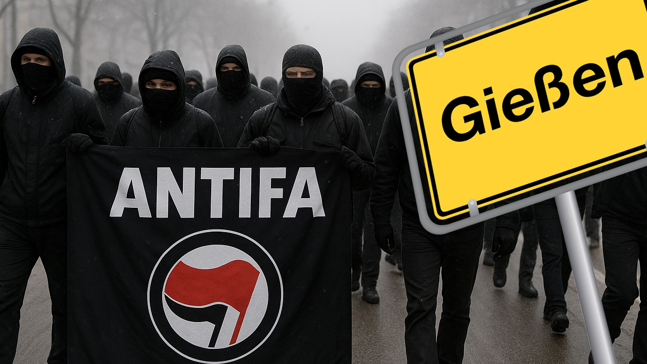 Die einstige SPD-Vorsitzende Saskia Esken bekannte sich auf Twitter offen zur Antifa. Auch der jetzige SPD-Co-Vorsitzende Lars Klingbeil war nach eigenem Bekunden in der Antifa aktiv. Die Radikalen stehen bei Linken hoch im Kurs. Im hessischen Gießen ist an diesem Wochenende zu besichtigen, welch bittere Früchte die Hätschelei der Linksterroristen durch Politik und Medien trägt. Wir erinnern uns an den Februar dieses Jahres: Wie auf Kommando wurden bundesweit CDU-Geschäftsstellen angegriffen und zum Teil gestürmt. Morgen erleben wir eine ganze Stadt im Ausnahmezustand. Die Antifa will die „Stadt Gießen zum Brennen bringen.“ Grund ist die Neugründung einer politischen Jugendorganisation. Die Stadt (92.000 Einwohner) rechnet mit 50.000 Demonstranten. Die Polizei holte sich für das erwartete Horror-Wochenende tausende Beamte aus 14 Bundesländern zur Unterstützung. Sie setzt Hubschrauber, Drohnen und die Pferdestaffel ein, Wasserwerfer stehen bereit. Schulkinder waren heute vom Unterricht befreit – zur Sicherheit. Einige Hotels nahmen für dieses Wochenende keine Reservierungen an und schließen, die Stadt versinkt wegen zahlloser Straßensperrungen und Umleitungen im Verkehrschaos. Der Einzelhandel bangt um Einnahmen am Black Week-Wochenende und die Schausteller um ihre Weihnachtsmarkt-Stände. „Nazis boxen!“, verkündet ein großes Transparent an einem Baugerüst. Die Bundeswehr warnt ihre Angehörigen vor Angriffen durch die Linksterroristen. Die Tagesschau spricht von „Ausnahmezustand“. Hessens Innenminister Roman Poseck (CDU) verurteilte die Aufrufe zu Gewalt. Und Frank-Thilo Becher, Oberbürgermeister Gießens, bekennt, Bürger hätten Angst „vor kriegsähnlichen Zuständen“. Gleichwohl zeigt das SPD-Mitglied Verständnis: Auf der offiziellen Website der Stadt sagt er, die Demonstranten wollten zeigen, „dass sie für eine offene, eine freie, eine vielfältige Gesellschaft eintreten.“ Sein Bürgermeister-Kollege Alexander Wright (SPD), der selbst zu Demonstrationen aufgerufen hatte, sorgt sich gar, „in der heutigen Zeit gehe es auch darum, Demonstranten zu schützen.“ Donald Trump hat die Antifa-Ost als Terrororganisation eingestuft. In Berlin steht die Vereinigung, auch „Hammerbande“ genannt, derzeit wegen Gewalttaten vor Gericht. Versuche der Bundesregierung, die Antifa zu verbieten, sind nicht bekannt, es fehlt der politische Wille. Das gilt auch für das linksextreme Portal „Indymedia“, Plattform für Antifa & Co. Breite Unterstützung findet die Antifa auch in Künstlerkreisen und Medien. WerteUnion-Bundesvize Sylvia Pantel: „Die Antifa nimmt eine ganze Stadt in Geiselhaft und die Politik lässt sie schalten und walten – und sie fördert sie sogar, etwa über das Programm ‚Demokratie leben‘. Für die Medien sind die Radikalen ‘Antifa-Aktivisten‘, ‚Linksautonome‘ oder ‚Aktivisten gegen Rechts‘. Dabei ist die Antifa mit ihrer Linksradikalität und Gewaltbereitschaft eher faschistisch als antifaschistisch. Bundesinnenminister Dobrindt muss sie verbieten.“